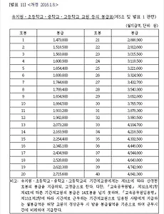 반응형 직장,법률90 2016년 공무원 봉급표 16년 군인 봉급표. 공무원 봉급 인상 3%. 2016 공무원채용 인원은? / 공무원 월급표. 2016년 공무원 봉급은 3퍼센트 인상 되었죠. 인사혁신처 성과급여과에서 발표한 2016년 공무원 봉급표 입니다. 이 글에서는 군더더기 없이 주요 공무원 봉급표만 올려 둡니다. 공무원 봉급 인상이 3% 늘어난 가운데 공무원채용에도 관심들이 많은데요. 2016년 공무원 채용 인원은 국가공무원 5급 380명, 7급 870명, 9급 공무원 4120명 총 5370명을 채용할 예쩡이라고 합니다. 이 2016년 공무원 공채 인원은 작년 2015년 공무원 공채 인력 4810명에 비해 560명 증가한 것인데요. 5820명이나 선발했던 1989년 이후 27년만에 최대 규모의 국가공무원 공채라고 합니다. 2016. 4. 18. ✔ 교육공무원 호봉표 2016 오늘 포스팅은 교육공무원 호봉표 2016 인상에 대해 적어보겠습니다.이번에 정부에서 공무원 호봉을 인상했는데요, 작년에 비해서 3.0%가 인상이 되었습니다.교원도 공무원에 속하는만큼 똑같이 호봉 인상률이 3.0% 인상이 되었습니다.그럼 2016년도 교육 공무원 호봉 봉급표를 보시겠습니다.호봉은 1호봉 부터 40호봉까지 표에 나와있습니다.그런데, 만약에 40호봉을 넘어가면 봉급을 어떻게 책정하는걸까요? 정년을 다 채워서 교원 생활하면 이 40호봉이 넘어가는데요. 봉급표에는 40호봉이 넘어가면 표기가 돼있지 않습니다.40호봉이 넘어가면 근가호봉으로 계산합니다.2016년의 교육 공무원 근속가봉은 아직 나오지 않았습니다.만약 근가호봉이 60,000원이라면..그래서 만약, 41호봉이면 40호봉의 봉급에 60,00.. 2016. 3. 28. 2015년 귀속분 건강보험 연말정산 및 장기요양보험 연말정산 2015년 건강보험 연말정산에 대한 안내입니다.2015년 건강보험 연말정산에 대한 안내입니다.보험료 연말정산이란,직장가입자의 2015년도 보험료를 전년도(2014년) 소득기준으로 우선 부과한 후,다음해인 2016년 3월에 2015년도 확정소득을 신고받아 보험료를 재산정하여,이미 낸 보험료와 차액을 4월에 추가 납입하거나 환급받는 절차입니다.2015년 소득금액 기준으로 납부해야할 보험료에서 기납부했던 보험료를 차감하여 4월분(5월 10일지급) 급여에서 차감 또는 환급 되며,소득금액기준으로 월 보험료 또한 재조정 됩니다.※건강보험 정산 금액은 개별 통보될 예정이며, 이번달 급여명세서에 건강보험료 연말정산 금액은 건강보험료정산공제로 표기됩니다.□ 연말정산 추진 일정○ 연말정산 산출내역서 발송: 2016. 3... 2016. 3. 25. ✔ 공무원 특별휴가 - 경조사 휴가 일수에 관한 복무 규정 공무원의 경조사 휴가는 특별휴가 항목으로 세분화 되어 있는데요. 공무원 경조사 휴가의 규정상 정식명칭은 '공무원 특별휴가'입니다. 공무원은 어떤 경우에 특별휴가를 얼마나 받는지, 즉, 공무원 경조사 휴가일수가 몇일인지 살펴보죠 국가공무원 복무규정에는 20조, 지방공무원 복무규정에서는 7조의 3에 명시되어 있어요. 특별휴가는 국가공무원과 지방공무원의 복무규정이 조금 다른데요. 국가공무원의 특별휴가에 대한 규정은 국가공무원 복무규정 제 20조에서 대부분 다루고 있는 반면에, 지방공무원 복무규정의 특별휴가는 출산휴가에 관해서는 국가공무원과 동일하지만, 나머지 경조사 규정에 대해서는 지방자치단체의 조례로 정하고 있어요. 각 지방공무원들은 자기가 속한 지자체의 조례를 보셔야 합니다. 아래는 국가공무원 복무규정[대.. 2016. 3. 24. ✔ 2016년 공무원 봉급표, 직업군인 월급표, 교사 호봉표, 경찰 공무원 보수표, 급여표 등 ✔ 2016년 공무원 봉급표를 검색하는 분들은 과연 현재 공무원이신 분들일까요?아니면 단지 공무원시험을 준비하는 분일까요??혹은 저 처럼 아무 상관없이 그저 그 공무원 분들의 연봉이 궁금하신분들일까요?저는 뭐, 이제서야 공무원시험 준비하기에는 너무 늦어버린 1人입니다.저는 약간 나이가 있는 세대라서 물론 제가 한참 학교졸업하고 이럴 때도 물론 공무원이 인기 직종이긴 했습니다만...지금 만큼은 아니었던 걸로 기억해요.요즘, 남녀 누구나 이 것만한 직업이 없잖아요? 게다가 시험지까지 유출 시키고 인사혁신처에 스파이처럼 침투할 생각을 했겠어요..ㅠ.ㅠ각설하고 2016년 공무원 봉급표 투척해 드립니다.2016년 공무원 봉급표에 대해 알아 볼까요?먼저 일반직 공무원과 일반직에 준하는 특정직 및 별정직 공무원 등의.. 2016. 3. 3. 2016년 경찰공무원 시험일정 순경 채용 (9급경찰공무원 공채), 전의경경채 2016 사이버경찰청 인터넷원서접수 기간 오늘부터 9급경찰공무원 공채 즉 순경 채용 시험 원서접수가 시작되었네요. 2016 사이버경찰청 인터넷원서접수 기간이 시작되었어요. 2016년 경찰공무원 시험일정은 총 2번 진행됩니다. 1차 시험의 사이버경찰청 인터넷원서접수는 오늘부터 2월26일까지입니다. http://gosi.police.go.kr/ 합격자발표는 3월25일입니다. 1차 9급 경찰공무원 채용인원은 총1449명입니다. 이 중에서 여경의 채용은 153명에 불과 합니다. 경찰청부터 남녀차별을 철폐해야겠군요. 여성가족부는 정작 경찰은 무서워서 건드리지 못하는건가요? ㅋㅋㅋ. 총 채용인원은 서울이 628명으로 가장 많지만 이 중에
