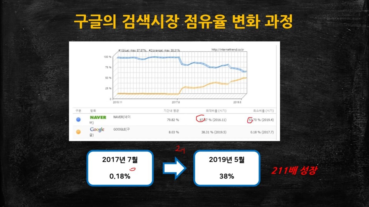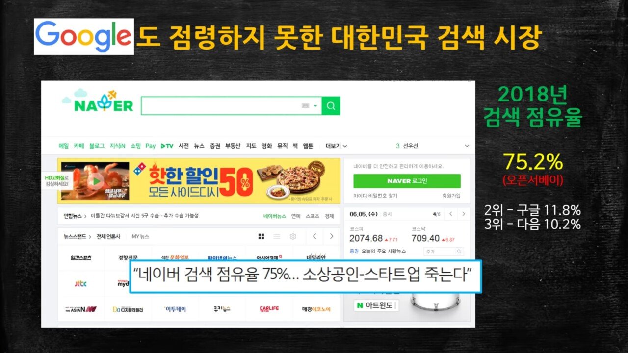 72프로였던 네이버의 검색 점유율이 50프로까지 떨어졌다.