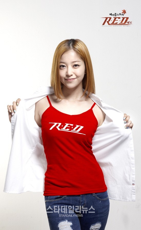 RED가 강렬하네. 넥슨의 대표적인 게임 메이플 스토리의 RED업데이트 때 홍보모델로 촬영했던 김가은의 모습이다.