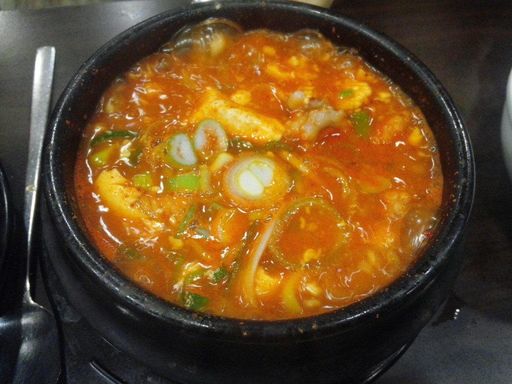 매운맛의 곱창 순두부찌개... 먹으면서 땀 한 바가지 흘렸네요.