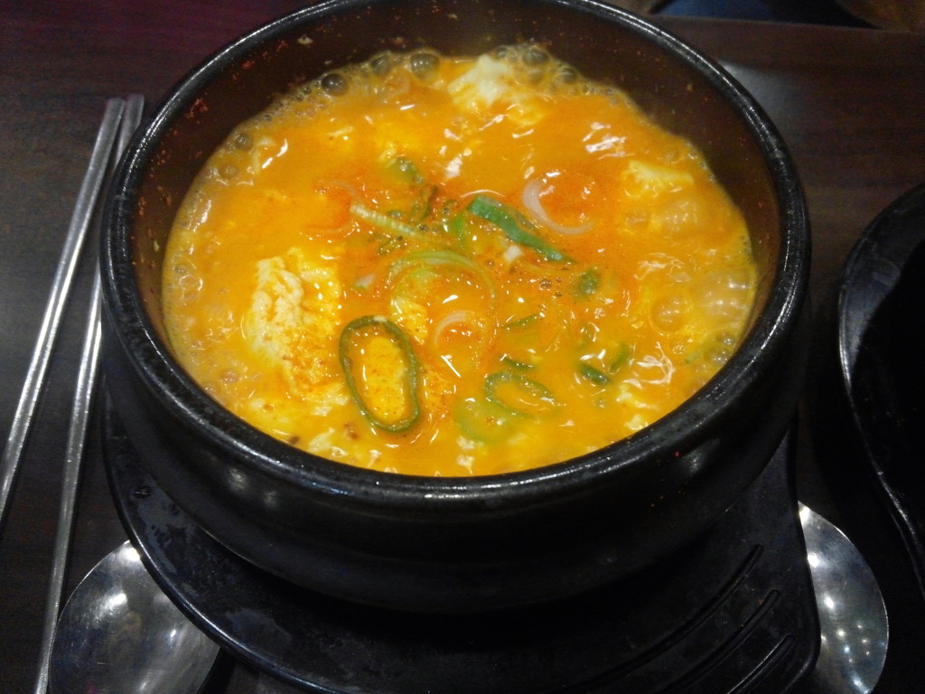 테이블에는 날계란이 놓여있어서 순두부가 나오면 곧장 계란을 깨 넣어 익혀 먹습니다.