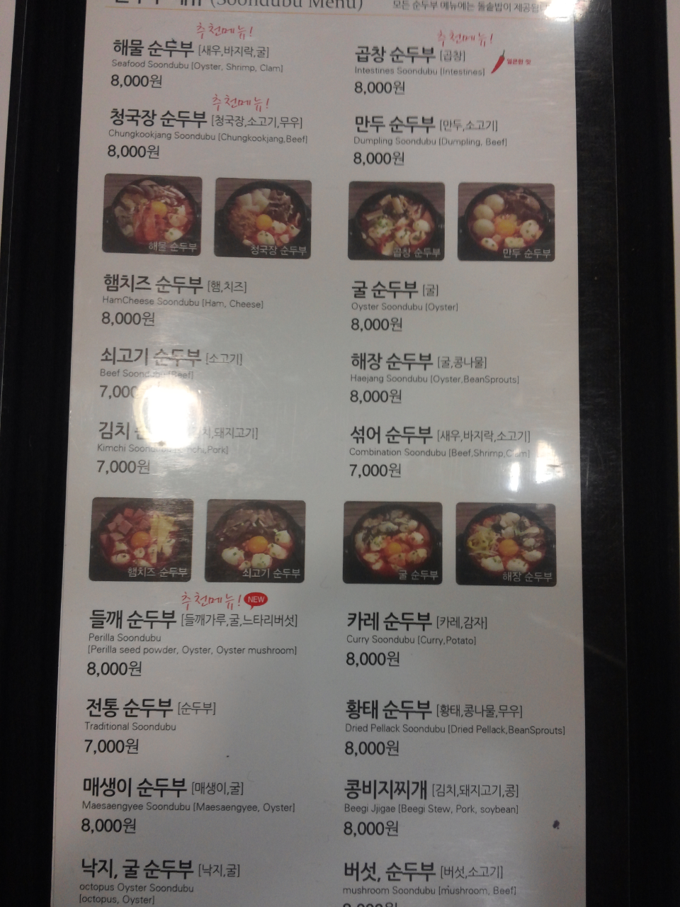 그나마 다양한 순두부찌개를 맛볼 수 있는 집이 집 근처에서는 이 집뿐이라... 어쩔 수 없이 들렀죠.