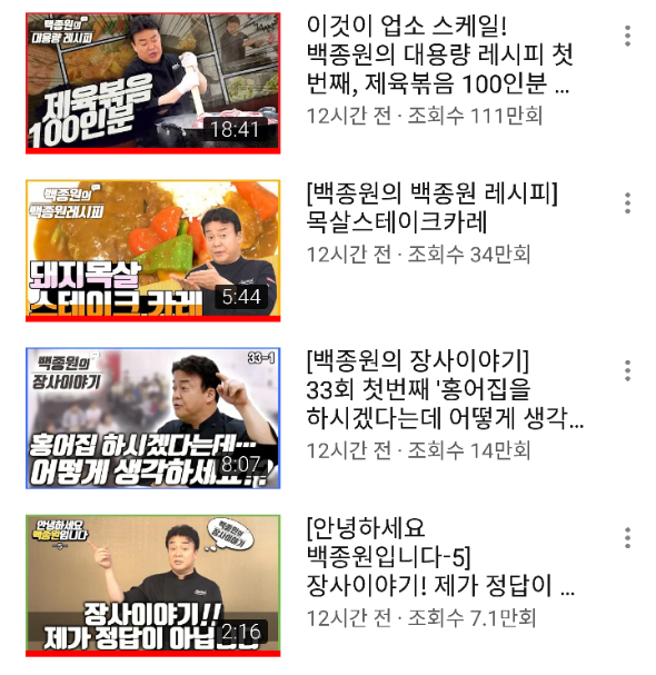 백종원씨는 이미 예전부터 유튜브 채널을 가지고 있었다.
