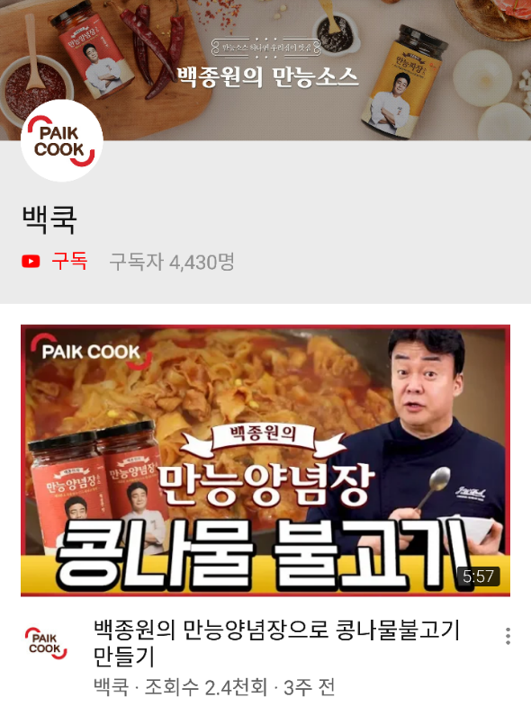 물론 백종원 만능간장 만능양념장 만능짜장 같은 백종원네 제품을 광고하는 채널이다.