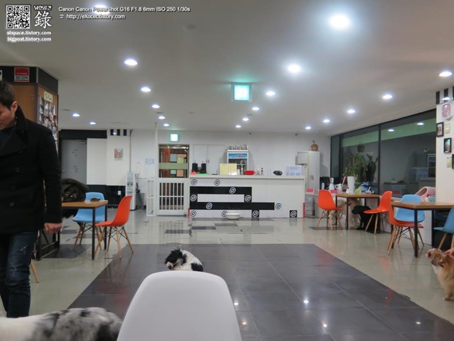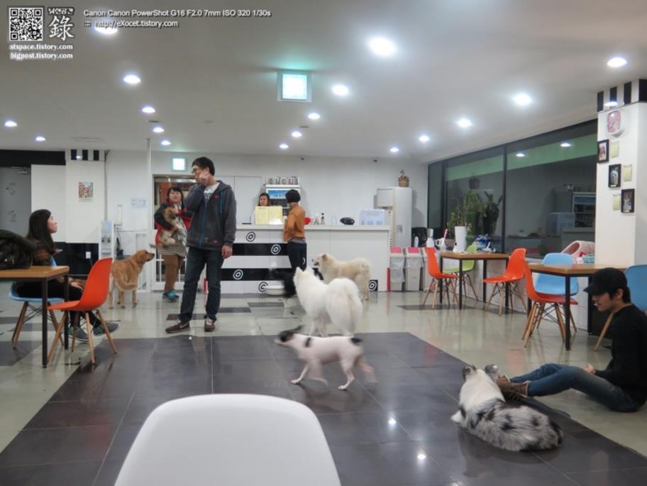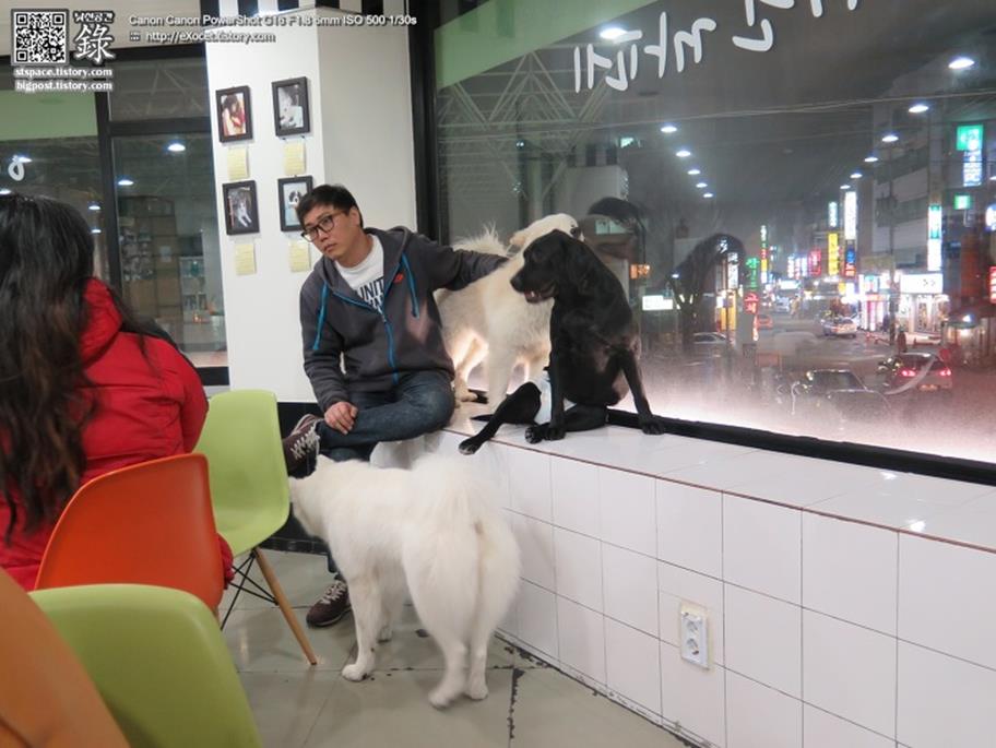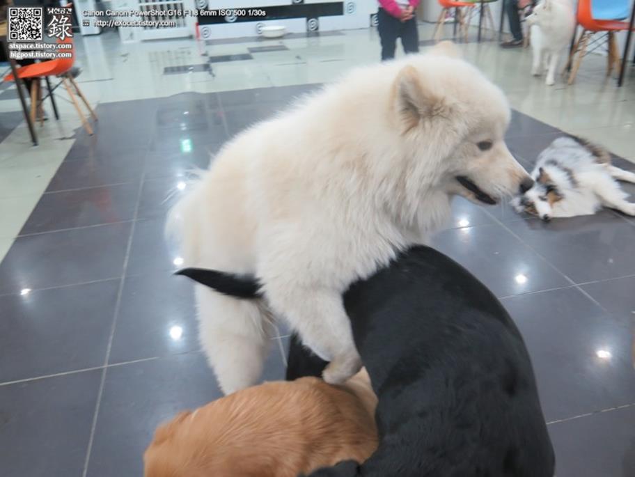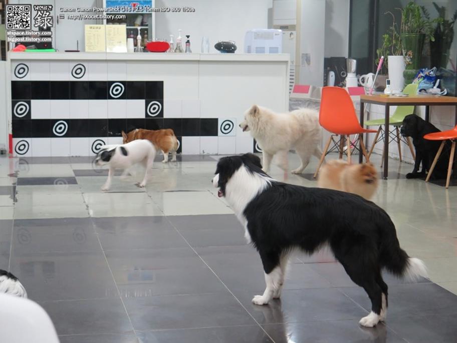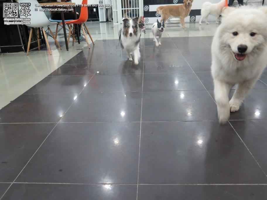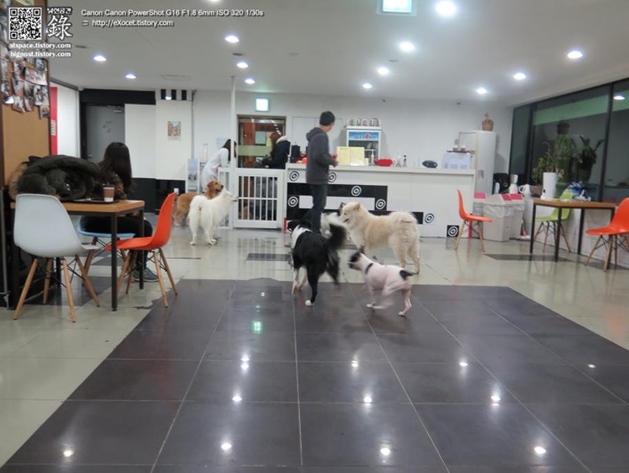 게다가 소형견들도 아니고, 골든 레트리버부터 시작해서 사모예드 두 마리(얘들은 아마손님인 듯), 셔플 랜드 쉽독, 보더 콜리, 웰시 코기 등등 테이블은 6개 정도만 있고, 나머지 공간이 넓어서 저 녀석들이 우당탕탕 뛰어다녀도 될 정도로 넓다는.
