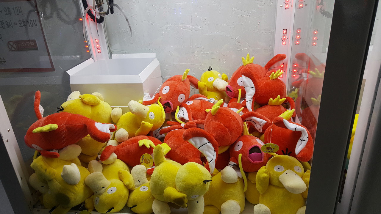 잉어킹만 잔뜩 잡고 돌아오던 길인데 우리 가족의 취미생활 중 하나인 인형 뽑기 방이 있으니... 냉큼 들어갔습니다.