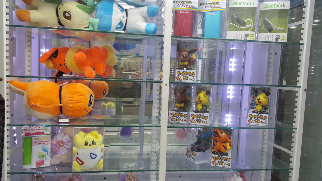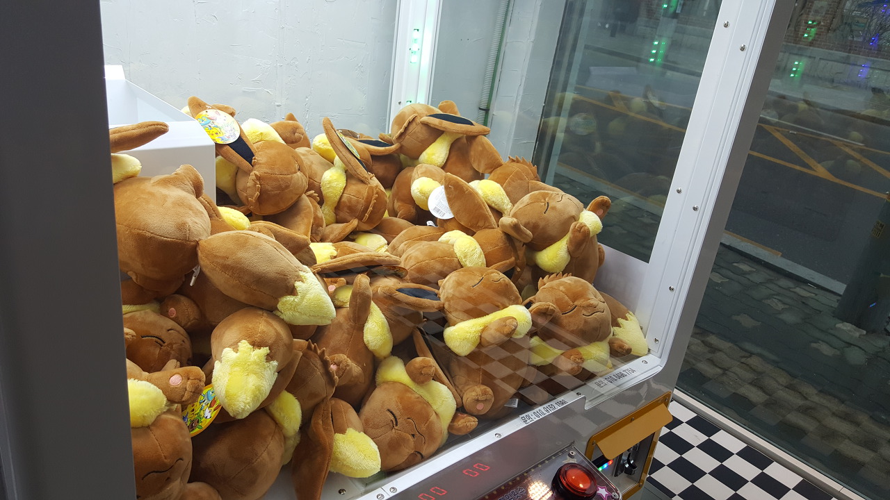 먼저 이 동네에서 가장 흔한 음... 대한민국에서 제일 흔한 포켓몬스터라 할 수 있는 이브이 인형이 먼저 보이네요.