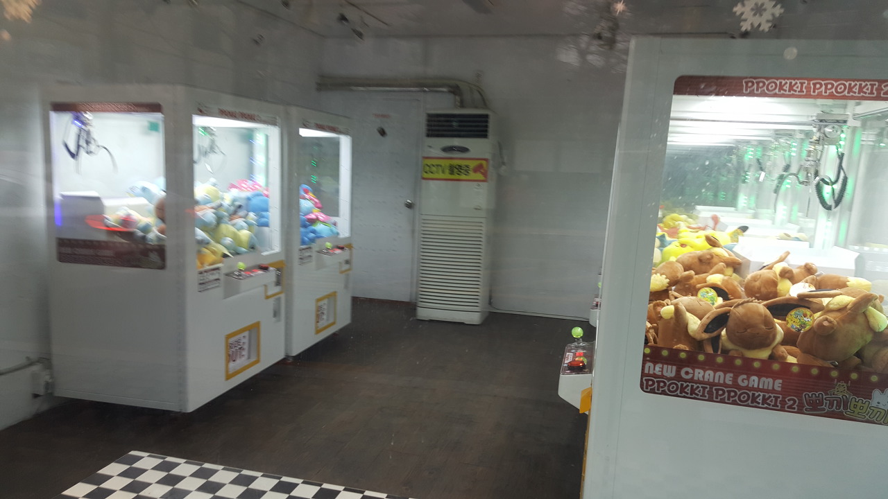 근처의 다른 가계에서는 그래도 5천 원 쓰면 한 개쯤은 뽑는 나름 중박 실력은 되는데... 여기 기계들은 머릴 잡아 올리면 위에서 닿아서 덜컹하는 순간 인형을 떨어트려버립니다.