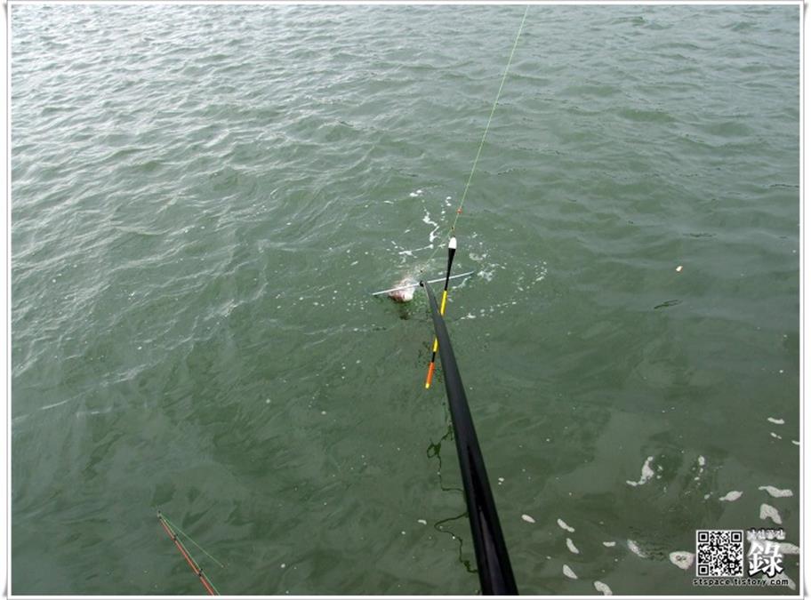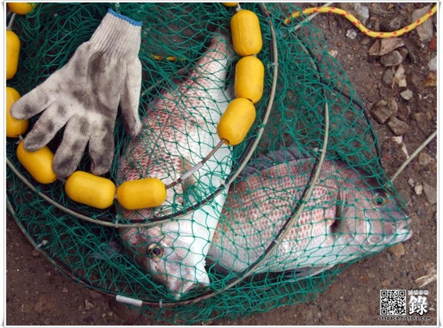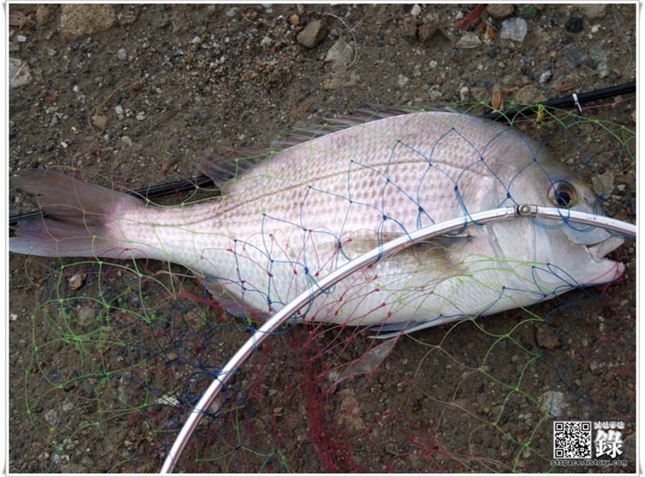 좌측에서 잘 잡히는 자리에 앉은 조사님들 일행 중에 그 잘 나오는 자리 나 공략할 것이지, 괜히 우리 쪽 자리를 탐하시는 분이 캐스팅도 잘 못하면서 라인을 크로스 시키는 바람에 줄이 엉키는 일이 잦아서 짜증이 폭발할 지경이었네요. 그 짓거리만 좀 안 했으면 몇 마리 잡았을 텐데... 친구와 사이좋게 참돔 한 마리씩 걸었네요.