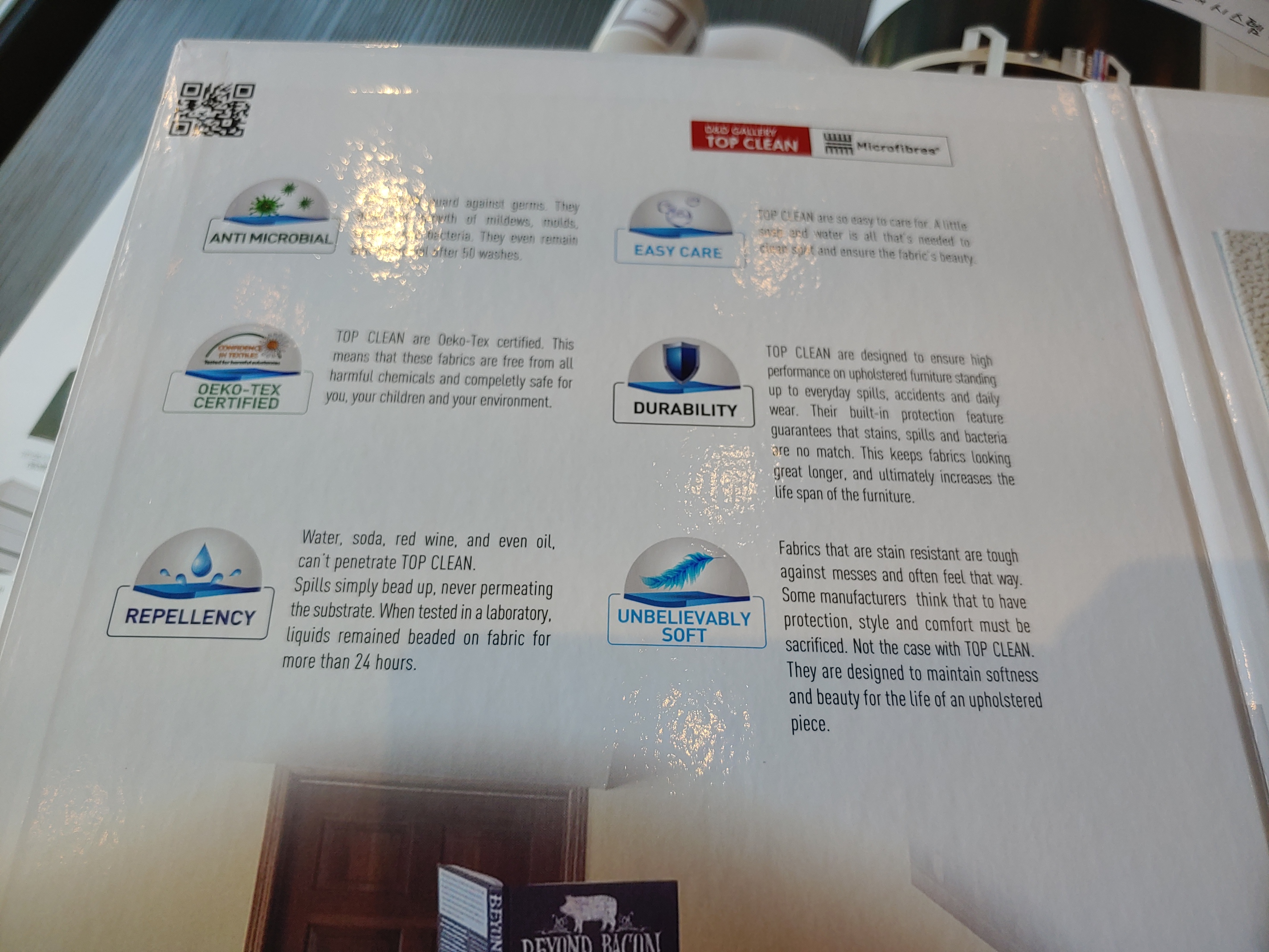 미국산 탑크린 소파의 장점은 패브릭 소파의 장점은 갖되 단점이던 오염에는 강하다는 점이다.
