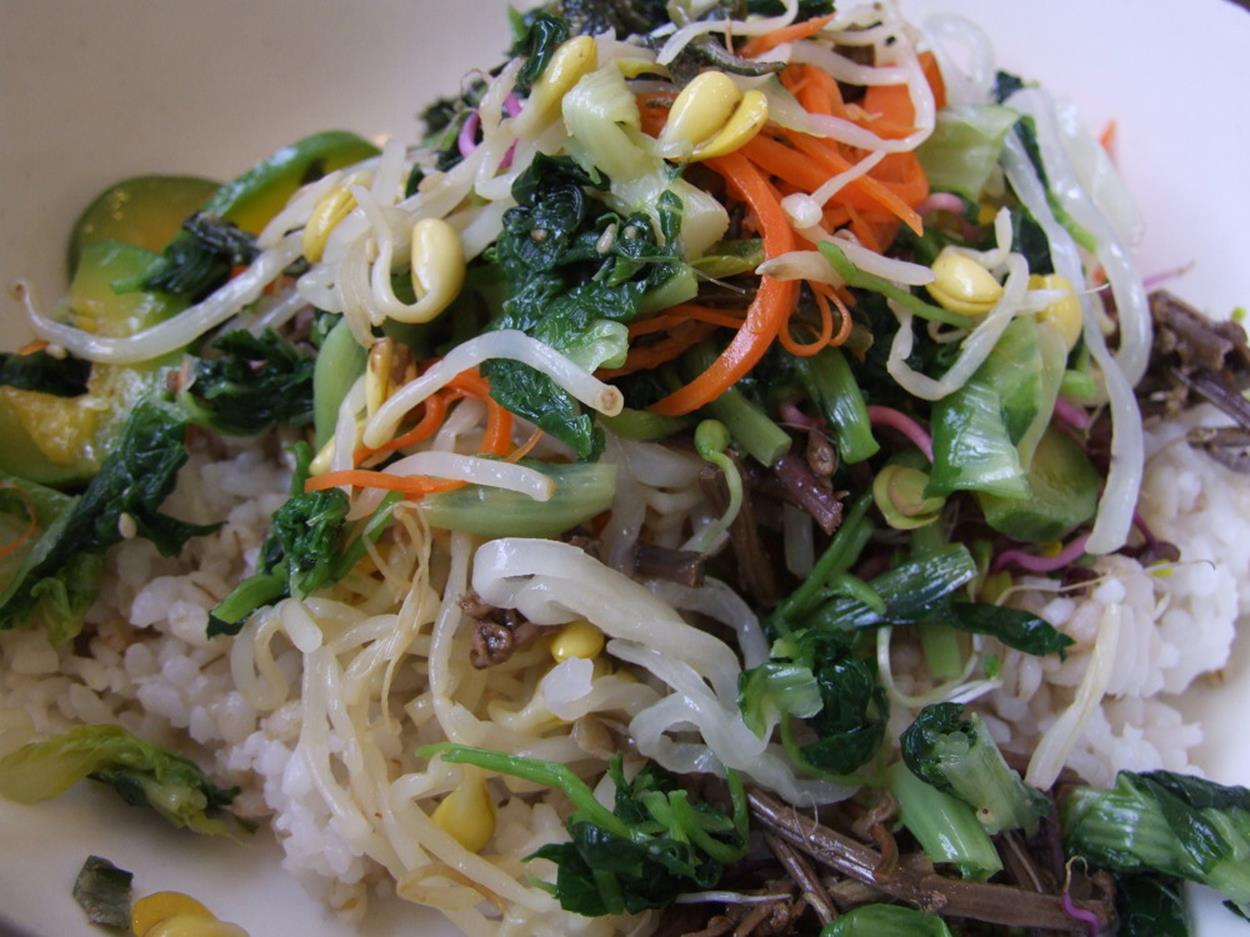 나물을 보리밥에 투척하고~~~ 된장을 스윽스윽~