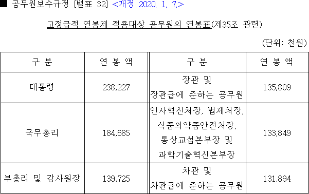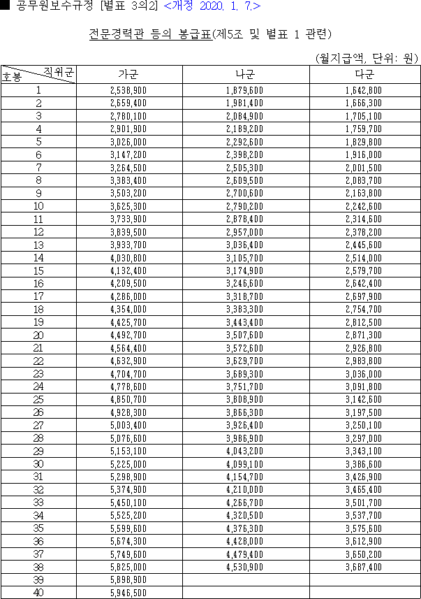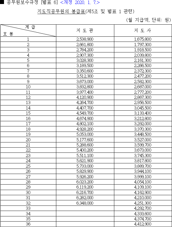 2020년 공무원 봉급표 2020 교원 호봉표 연구직 지도직 공안직 공무원 판사 검사 월급표 대통령 연봉