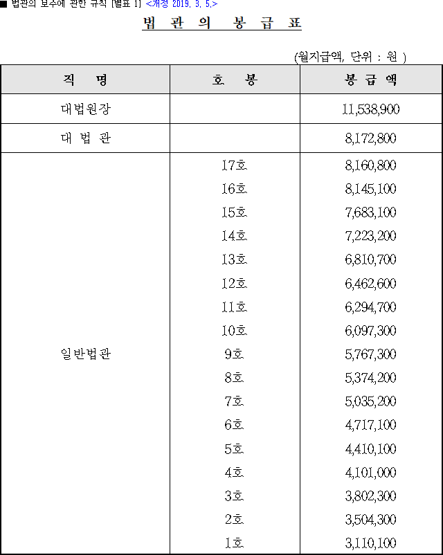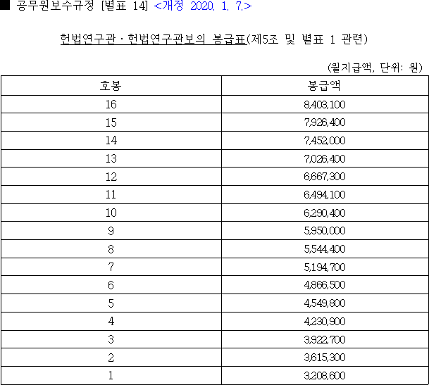 헌법연구관 봉급표