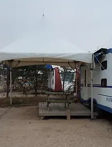 몇 년 전겨울 12월 30일에 쿠팡에서 모두투어 카라반 할인 쿠폰을 구입해서 다녀 왔었드랫죠. 정상가 150,000원인데, 쿠팡에서 할인 받아서 70,000원. +그릴 숯 12,000원. 글 쓰려고 지금 알아 보니까, 옥션에서 상시 7~80,000원 하는 군요. 단! 주말엔 130,000원예욤. 주중에만 반값을 해주는 이 불편한 진실. ㅋ 학암포 카라반은 깨끗했지만, 12월30일이라 엄청 추웠어요. 난방을 굉장히 했는데도, 그닥 따뜻해지지 않아서, 밤새 물을 끓이면서 잤더랍니다.T_T; 근처에 학암포 해수욕장에서 일몰을 구경할수도 있고, 학암포 방파제에서 재미 삼아 낚시를 할 수도 있습니다. 막채비에 묶음추 달아서 갯지렁이 한곽으로 한나절 재미나게 보낼 수 있습니다. 조그마한 카라반 안에 샤워시설 화장실..